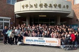 파이낸셜대구경북 김유신 기자 | 달성군은 10월 30일과 31일 관내 노인복지시설 33개소 종사자 76명을 대상으로 ‘달성군 노인복지시설 종사자 역량강화 연수’를 진행했다고 밝혔다. 이번 연수는 급변하는 복지환경에 능동적으로 대응하고, 노인복지서비스의 질 향상을 위한 목적에서 추진됐다. 연수는 직무교육, 선진 복지기관 견학, 지역 문화체험 등 다양한 프로그램으로 구성됐으며, 경북 영주, 충북 단양, 제천에서 진행됐다. 연수에 참여한 한 종사자는 “일상에서 잠시 벗어나 체험활동에 참여하고, 동료들과 정보를 교환하며 네트워크를 형성할 수 있어 보람된 시간이었다”고 전했다. 최재훈 달성군수는 “노인복지의 최일선에서 헌신하고 계신 종사자분들께 감사의 마음을 전한다”며 “이번 연수가 종사자들이 실무능력을 강화하고, 새로운 복지정책과 서비스 방향에 대한 이해를 넓히는 계기가 되길 바란다”고 말했다. [뉴스출처 : 대구시 달성군]