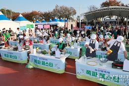 파이낸셜대구경북 기자 | 예천군은 10월 31일부터 11월 2일까지 3일간 한천체육공원 일원에서 ‘2025 예천활축제&농산물축제’를 개최하고 있으며, 올해 축제에서는 특히 예천쪽파가 주목받고 있다. 예천은 전국 잎쪽파 재배농가에 공급되는 쪽파 종구의 절반 이상을 차지하는 지역으로, 예천에서 시작된 종구가 전국 각지의 맛있는 잎쪽파 생산으로 이어지는 중추적인 역할을 하고 있다. 예천군은 지난해 처음 선보인 ‘예천쪽파페스타’가 큰 호응을 얻음에 따라, 올해는 프로그램을 확대하고 체험 요소를 강화한 ‘2025 예천쪽파페스타’로 다시 선보인다. 축제 첫날 열린 ‘예천쪽파전 경연대회’에는 읍·면별 2인 1팀, 총 12팀이 참가해 예천쪽파와 지역 농특산물을 활용한 다양한 창의적 쪽파전을 선보였다. 경연은 유명 요리프로그램을 연상케 하는 무대 구성과 연출로 관람객들의 이목을 끌었으며, 현장 참여형 퀴즈 및 이벤트도 함께 진행되어 축제 분위기를 한층 더 뜨겁게 만들었다. 심사는 예천농산물축제추진위원회 위원 3명과 우리음식연구회 위원 2명이 맡았으며, 창의성, 맛의 조화, 완성도, 지역 농특산물 활용