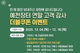 파이낸셜대구경북 김유신 기자 | 예천군은 직영 농특산물 온라인쇼핑몰 ‘예천장터’에서 4일에서 18일까지 ‘연말 고객감사 할인이벤트’를 진행한다고 밝혔다. 이번 행사는 한 해 동안 ‘예천장터’를 이용하며 애정을 보내준 고객들에게 감사의 마음을 전하기 위해 기획된 연말 특별 이벤트로, 기존 회원에게 4천 원, 7천 원 할인쿠폰을 지급한다. 구매 금액에 따라 ▲5만 원 이상 구매 시 7천 원 할인쿠폰을 사용할 수 있고, ▲2만 원 이상 구매 시 4천 원 할인쿠폰을 사용할 수 있다. 쿠폰을 다운로드 받으면 1일 내 사용해야 하고, 쿠폰의 중복 사용은 불가하다. 또한 ‘예천장터’는 상시로 신규 가입 고객에게 4천 원 할인쿠폰을 제공하고 있으며, 시즌별 품목 할인 이벤트와 명절 5~15% 특별 할인행사 등 다양한 이벤트를 운영해 고객 접근성과 혜택을 지속으로 강화하고 있다. 아울러 예천군은 우수한 농특산물의 홍보와 유통 활성화를 위해 온라인 쇼핑몰 ‘예천장터’ 운영뿐만 아니라, 서울 등 대도시에서 열리는 직거래장터 참여하는 등 계절별 특판전 개최 등 온·오프라인을 넘나드는 다양한 판촉 활동을 꾸준히 전개하고