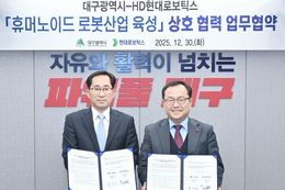 파이낸셜대구경북 김유신 기자 | 대구광역시는 12월 30일 오후 2시 30분, 산격청사 제1대회의실에서 국내 로봇 시장 점유율 1위 기업인 HD현대로보틱스와 ‘휴머노이드 로봇 산업 육성’을 위한 업무협약(MOU)을 체결했다. 이번 협약은 대구시와 HD현대로보틱스가 협력해 지역경제의 핵심 성장 동력으로 육성 중인 휴머노이드 로봇 산업의 저변을 확대하고, 관련 생태계를 조성하는 중요한 첫걸음이다. 특히 양 기관은 대구 로봇산업의 질적 도약을 위해 ‘로봇 국가첨단전략산업 특화단지’ 지정에 역량을 집중하고, 대구를 대한민국 로봇 산업의 전초기지로 구축한다는 구상이다. 또한, 대구시는 HD현대로보틱스 대구 본사 공장의 제조 혁신을 위한 ‘AI 팩토리 선도프로젝트’를 추진하고, 로봇 실증 인프라 확충을 위한 국비 예산 확보 등 정책적 지원을 강화할 방침이다. HD현대로보틱스는 글로벌 로봇 시장 수요 증가에 선제적으로 대응하기 위해 현재 연간 8,000대 수준인 생산 능력을 20,000대 규모로 2.5배 확대할 계획이다. 이를 위해 제조 공정에 AI 기술을 본격 도입하고, 자동화율을 기존 50%에서 80%까지