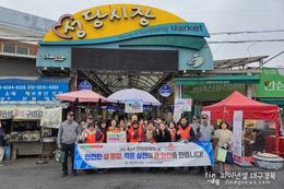 파이낸셜대구경북 김유신 기자 | 대구 남구는 2월 10일 대명4동 청춘골목 조성지 일원의 성당시장에서 설 명절을 앞두고 지역 주민의 안전의식을 높이기 위한 안전문화운동 캠페인을 실시했다. 이번 캠페인은 남구청을 중심으로 남부경찰서와 안전모니터봉사단이 함께 참여한 민·관 합동 캠페인으로, 설 명절 기간 중 증가할 수 있는 생활안전 사고와 범죄를 예방하고자 마련됐다. 이날 캠페인에서는 성당시장을 찾은 주민과 상인을 대상으로 ▲설 명절 대비 생활안전 수칙 안내 ▲범죄예방 홍보 ▲안전문화 확산을 위한 홍보물 배부 등 현장 중심 활동이 진행됐다. 특히 '매월 4일은 안전점검의 날' 홍보 물품을 활용해 일상 속 안전 실천의 중요성을 효과적으로 알렸다. 남구청 관계자는 “설 명절을 앞두고 전통시장을 찾는 주민이 많은 만큼, 현장에서 직접 소통하는 안전 홍보가 큰 의미를 가진다.”라며, “앞으로도 경찰서 및 민간 단체와 협력해 주민이 체감할 수 있는 안전문화 활동을 지속적으로 추진하겠다.”라고 전했다. 한편, 남구는 계절별·테마별 안전문화 캠페인을 통해 생활 속 위험요인을 사전에 예방하고, 안전한 지역사회 조성을