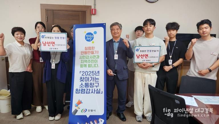 청렴감사실장은 “청렴은 공직사회만의 과제가 아니라 주민과 함께 만들어가는 가치”라며 “앞으로도 소통창구 청렴감사실을 통해 현장의 목소리를 꾸준히 청취하고 청렴시민감사관 제도를 적극 홍보해 나가겠다. 시민 모두가 체감할 수 있는 청렴 행정을 실현하고, 민·관 협력 체계를 강화해 청렴한 안동을 만들어가는 데 힘쓰겠다”고 강조했다.