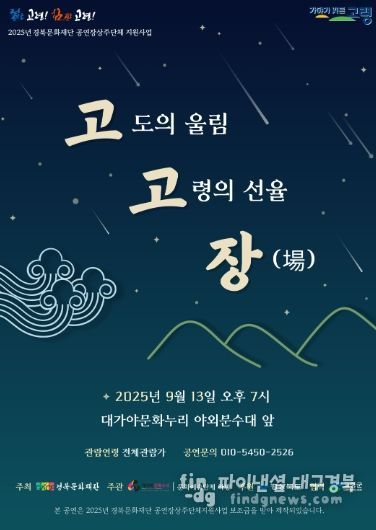 고령군(군수 이남철)는 “유서 깊은 지산동 고분군을 배경으로 열릴 고고장은 우리 전통 음악의 멋과 감동을 나누는 소중한 무대”라며, “자연과 문화가 어우러지는 이번 공연을 통해 진정한 쉼의 시간을 누리시길 바란다.”라고 전했다.