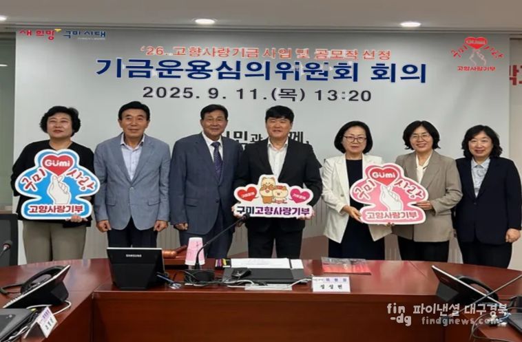 파이낸셜대구경북 이지원 기자 | 구미시는 지난 11일 기금운용심의위원회 회의를 열고 2026년도 고향사랑 기금사업과 기금 아이디어 공모작을 최종 확정했다. 회의에는 정성현 부시장(위원장)과 위원 8명이 참석했다.