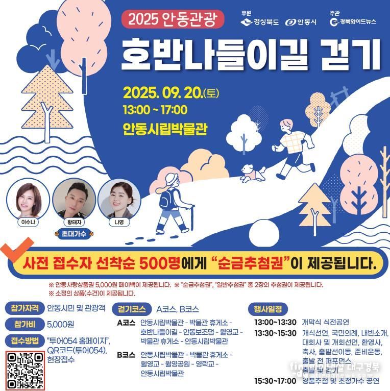 파이낸셜대구경북 이지원 기자 | 안동시는 오는 9월 20일 오후 1시, 안동시립박물관 특설무대와 호반나들이길에서 ‘제12회 안동 관광 호반나들이길 걷기’ 행사를 개최한다.