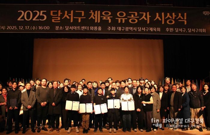 파이낸셜대구경북 김유신 기자 | 대구 달서구 달서구체육회는 지난 17일 달서아트센터에서 ‘2025 달서구 체육유공자 시상식’을 개최하고, 한 해 동안 달서구 체육 발전에 기여한 체육인들을 격려하는 뜻깊은 시간을 가졌다.