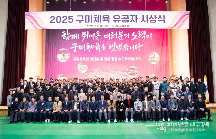 파이낸셜대구경북 기자 | 구미시는 지난 18일 복합스포츠센터 2층 다목적경기장에서 ‘2025년 구미체육 유공자 시상식’을 개최했다. 이날 행사에는 김장호 구미시장과 박교상 구미시의회 의장을 비롯해 체육인 400여 명이 참석했다.