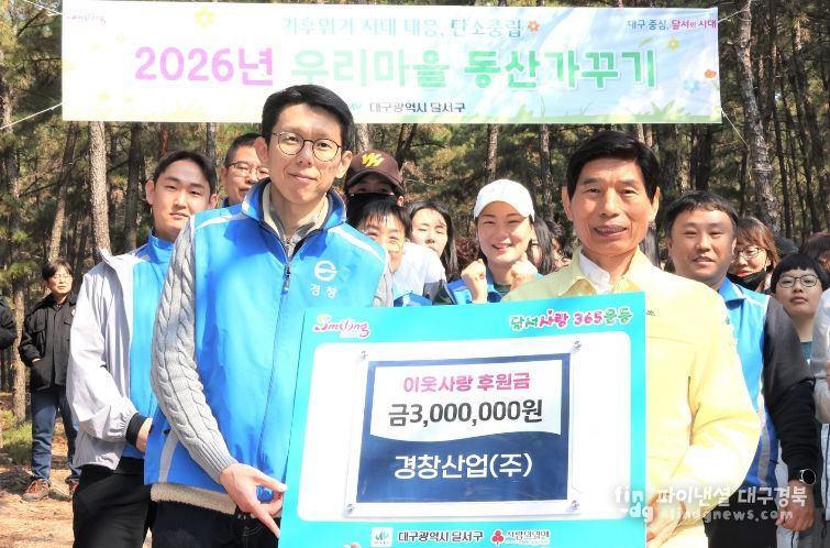 경창산업㈜은 달서구가 주최한 ‘우리마을 동산가꾸기 나무심기 행사’에 직원들로 구성된 C&S봉사단이 참여했으며, 이와 함께 후원금도 전달하며 지역사회 나눔 실천에 동참했다.