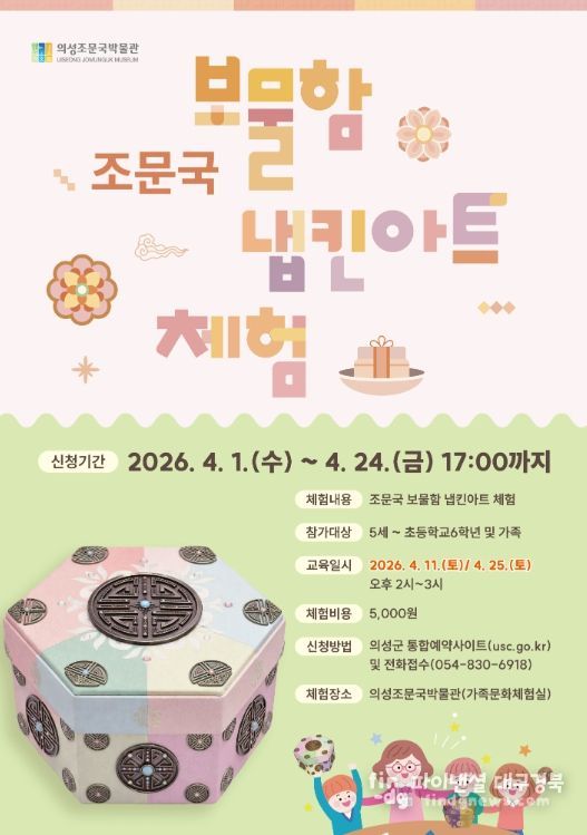 파이낸셜대구경북 기자 | 의성군조문국박물관은 어린이와 가족 관람객을 대상으로 우리 문화유산의 의미를 쉽고 흥미롭게 배울 수 있는 체험형 교육프로그램 '주말엔 박물관 - 보물함 냅킨아트 체험'을 운영한다.