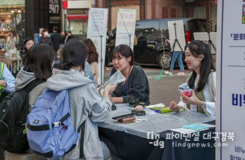 중구 진골목과 동인세대공감, 동성로 28 아트스퀘어에서 ‘참여청년들이 바라본 대구’를 주제로 전시․체험부스와 버스킹 공연을 진행하며 주민들과 함께 뜻깊은 시간을 보냈다.