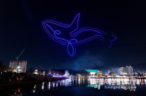 파이낸셜대구경북 김유신 기자 | 지난 23일과 24일 수많은 시민이 지켜보는 가운데 수성못 상공에 350여 대의 군집드론으로 연출한 드론아트쇼가 펼쳐져 겨울 밤하늘을 수놓았다.