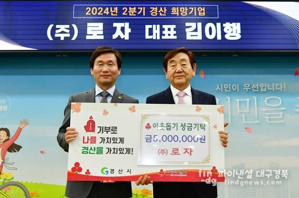 파이낸셜대구경북 신영숙 기자 | ㈜로자는 2일 경산시청을 방문해 소외된 이웃을 돕기 위한 성금 5백만원을 기탁했다.