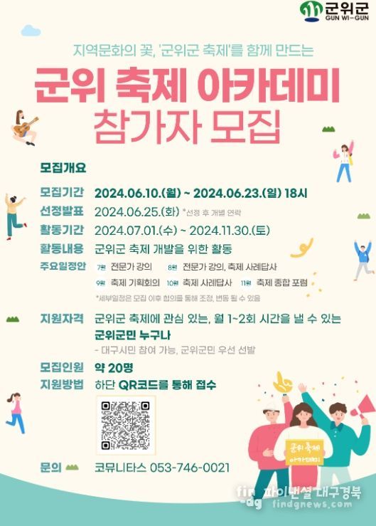 파이낸셜대구경북 이지원 기자 | 군위군은 지역의 축제 전문가 양성을 위한 ‘군위 축제 아카데미’ 참가자를 모집한다.