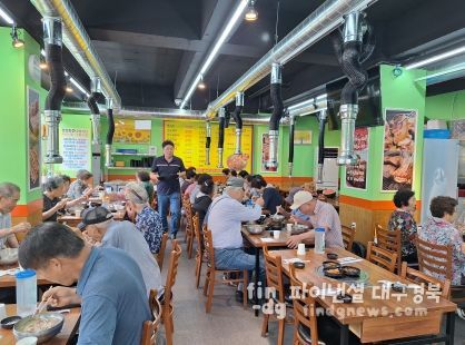 파이낸셜대구경북 이지원 기자 | 대구 북구 태전1동 맛있는 이오갈비 태전직영점은 초복을 맞아 7월 10일 관내 경로당 3개소(은마, 두성3차, 한라) 어르신 50명에게 삼계탕 나눔 활동을 펼쳤다.