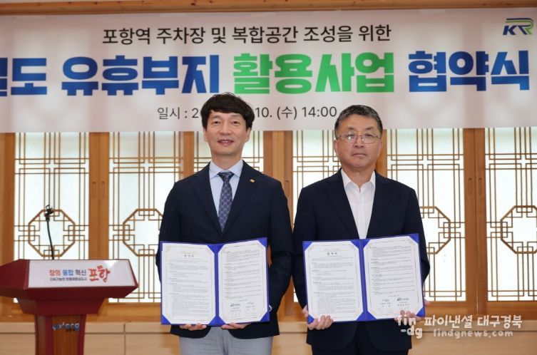 시는 10일 국가철도공단과 업무협약을 체결하고, 포항역 주차장 확충을 위한 철도 유휴부지 활용 사업에 긴밀히 협력하기로 했다. 이번 협약으로 사업 추진에 속도가 붙을 전망이다.