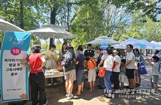 현장 부스에서는 복지위기 징후의 조기 감지를 위해 ▲‘복지위기 알림 앱’·‘달서안심복지서비스 앱’ 가입 지원 ▲복지제도 안내 리플릿 배포 및 상담 ▲위기가구 조기 발굴 홍보 등 체험·상담 프로그램을 운영했다.