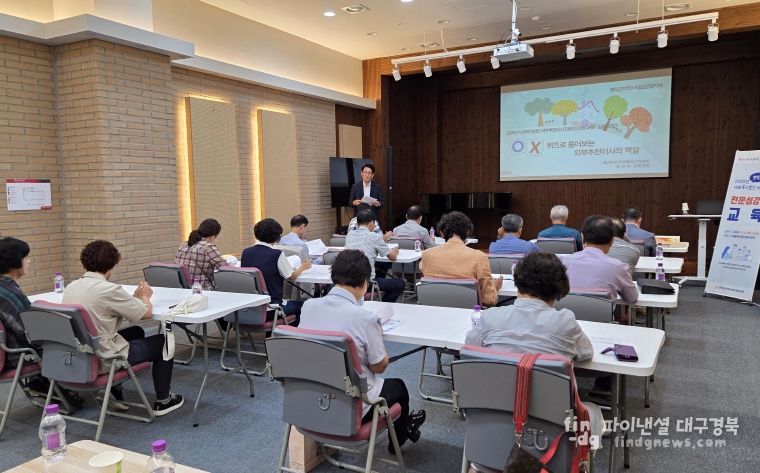 올해 교육은 경산시니어클럽 정진석 관장을 초청해 사회복지법인 이사회의 이해, 외부 추천 이사제도의 이해, 외부 추천 이사의 역할 등을 퀴즈 풀이 방식으로 진행해 참가자들로부터 좋은 반응을 받았다.