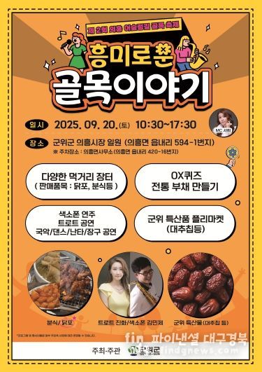 김진열 군위군수는 “특색 있는 먹거리와 정겨운 볼거리, 그리고 어슬렁길 골목상권 공동체와 의흥 주민들의 열정으로 풍성하고 흥미로운 축제를 준비했다”며, “가족과 함께 군위군을 방문해 즐거운 시간을 보내고, 의흥면이 군위 동부권을 대표하는 관광지로 자리매김해 지역 활력에도 보탬이 되기를 기대한다”고 말했다.