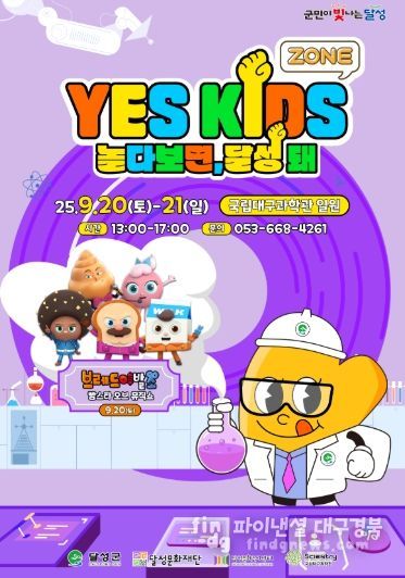 파이낸셜대구경북 이지원 기자 | 달성문화재단 달성문화도시센터가 오는 9월 20일부터 21일까지 양일간 국립대구과학관 일대에서 ‘YES! 키즈존 3회차’를 개최한다.