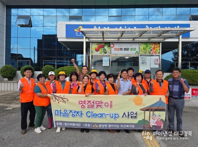 파이낸셜대구경북 금교광 기자 | 의성군 봉양면은 지난 16일 깔끄미봉사단(단장 정두원) 주관으로 추석 명절을 앞두고 관내 마을 정자 29개를 대상으로 방역 및 청소를 실시하는 Clean-Up 사업을 추진했다고 밝혔다.
