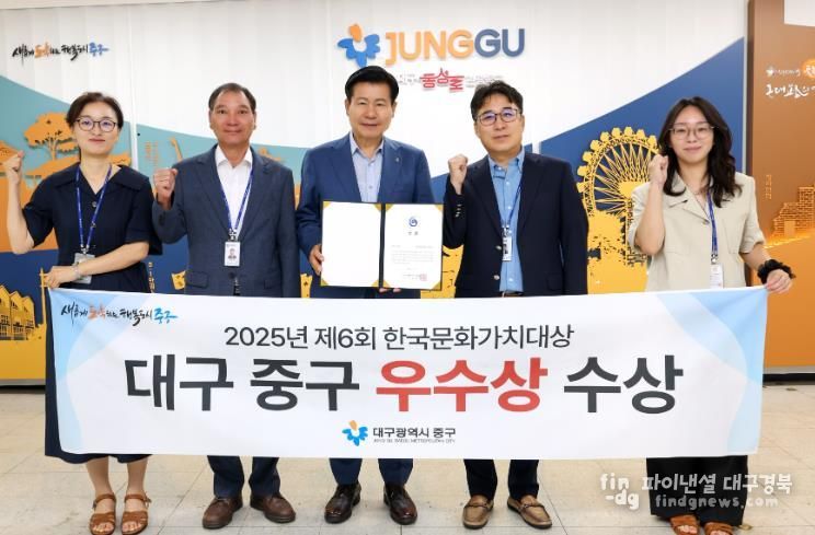 파이낸셜대구경북 김유신 기자 | 대구 중구는 (사)한국문화가치연구협회가 주관한 ‘2025년 제6회 한국문화가치대상’에서 우수상을 받았다고 밝혔다.