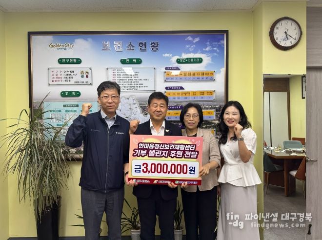 파이낸셜대구경북 신영숙 기자 | 경주시보건소는 ‘건강한 직장, 활기찬 일터 만들기’를 주제로 추진한 ‘기부 챌린지’ 걷기 캠페인을 성공적으로 마무리하고, 지난 17일 한마음정신보건재활센터에 후원금을 전달했다고 밝혔다.