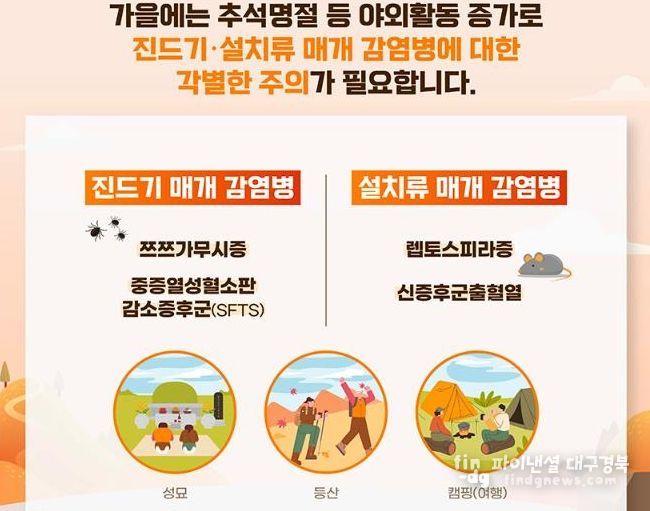 파이낸셜대구경북 신영숙 기자 | 울진군보건소는 다가오는 추석 명절을 맞아 성묘와 야외 활동이 늘어남에 따라 진드기 매개 감염병 예방에 각별한 주의를 당부했다.