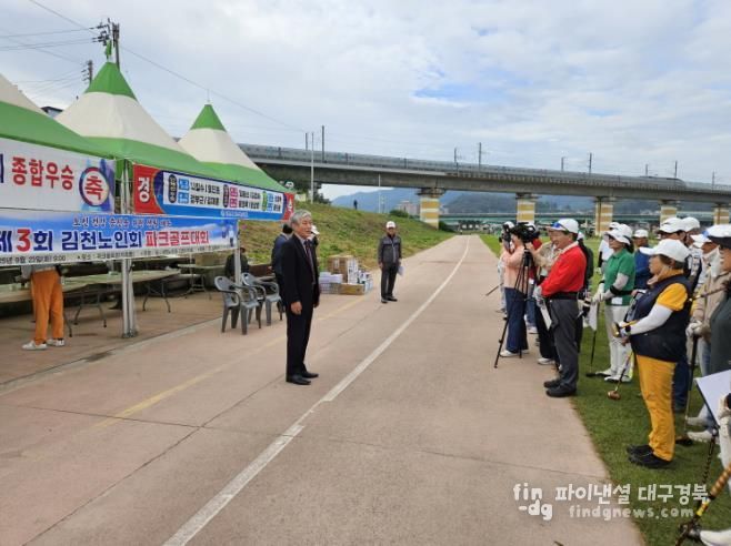 파이낸셜대구경북 강대산 기자 | 김천시는 대한노인회 김천시지회 주관으로 23일, 파크골프 선수와 심판, 운영위원 60여 명이 참석한 가운데 김천파크골프장에서 『김천시 노인회 파크골프대회』를 개최했다.
