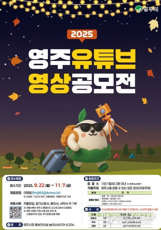 파이낸셜대구경북 이지원 기자 | 경북 영주시는 영주를 소재로 한 참신한 홍보 콘텐츠를 발굴·활용하기 위해 '2025 영주 유튜브 영상 공모전'을 개최한다.
