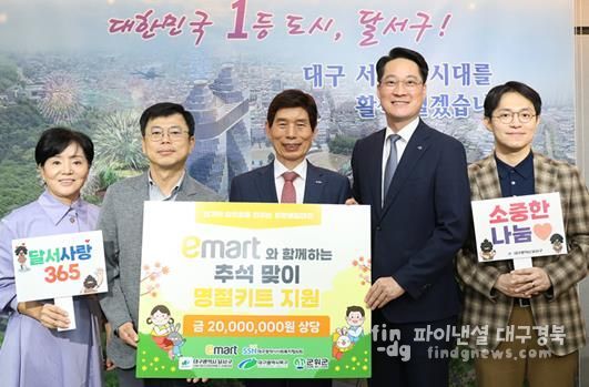 파이낸셜대구경북 김유신 기자 | 대구 달서구(구청장 이태훈)는 대구광역시사회복지협의회와 이마트로부터 추석맞이 명절키트 100세트(약 700만원 상당)를 기탁받았다고 29일 밝혔다.