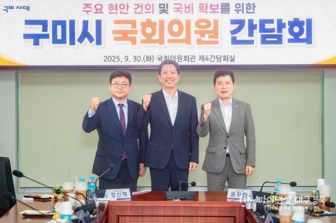 파이낸셜대구경북 금교광 기자 | 구미시는 9월 30일 국회를 방문해 구자근, 강명구 지역구 국회의원과 간담회를 열고 지역 주요 현안과 국비 확보 전략을 논의했다. 이날 간담회에는 김장호 시장을 비롯해 구미시 주요 간부 공무원 등 30여 명이 참석했다. 시는 현안 사업 추진 상황과 정부 예산 동향을 공유하며 국회 차원의 전략적 지원 방안을 모색했다.