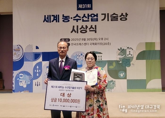파이낸셜대구경북 이지원 기자 | 성주군은 지난 9월 30일 ㈜알알이푸드(대표 윤지영)가 ‘제31회 세계농수산업기술상’ 기술개발분야 대상을 수상했다고 밝혔다.
