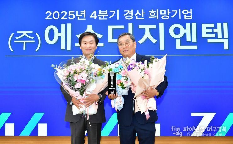 파이낸셜대구경북 신영숙 기자 | 경산시(시장 조현일)는 (주)에스디지엔텍을 2025년 4분기 경산 희망 기업으로 선정하고 1일 정례회에서 트로피 시상 및 현판 전달식을 가졌다.