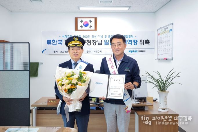 이날 류한국 서구청장은 서대구역 ‘일일 명예역장’으로 위촉되어 업무보고, 매표 체험, 안전 점검, 고객 감사 인사 등을 수행하며 철도 현장의 주요 역할을 직접 체험했다.