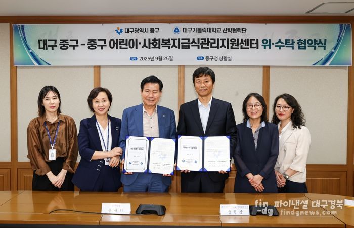 파이낸셜대구경북 김유신 기자 | 대구 중구는 지난달 25일 대구가톨릭대학교 산학협력단과 ‘중구 어린이·사회복지 급식관리지원센터 위탁 운영’ 협약을 체결했다.