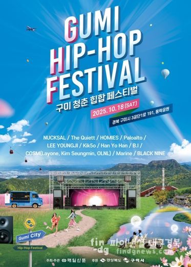 파이낸셜대구경북 기자 | 구미시는 오는 10월 18일 동락공원에서 청춘들의 열정과 힙합 음악이 어우러지는 '2025 구미청춘힙합페스티벌'을 개최한다. 이번 공연은 오후 3시 30분부터 밤 10시까지 진행되며, 전석 무료(스탠딩존)로 선착순 입장할 수 있다.