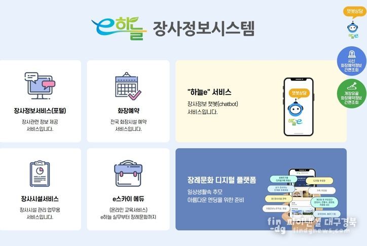 파이낸셜대구경북 기자 | 보건복지부 및 한국장례문화진흥원은 국가정보자원관리원 화재로 중단됐던 ‘e하늘장사정보시스템’ 운영이 10월 17일 0시부터 순차적으로 재개된다고 밝혔다.