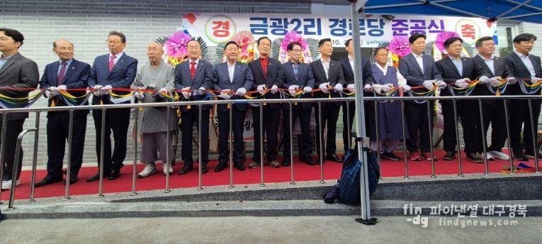 파이낸셜대구경북 기자 | 포항시는 20일 남구 동해면 금광2리 경로당(금광로 210-6)에서 어르신과 자생단체, 지역주민 등 100여 명이 참석한 가운데 ‘금광2리 경로당 준공식’을 개최했다.