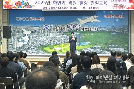 파이낸셜대구경북 김유신 기자 | 대구 달서구는 지난 20일 구청에서 민원담당 직원 등 220여 명을 대상으로, 개그공연과 친절교육을 결합한 새로운 형식의‘힐링 친절교육’을 실시했다.