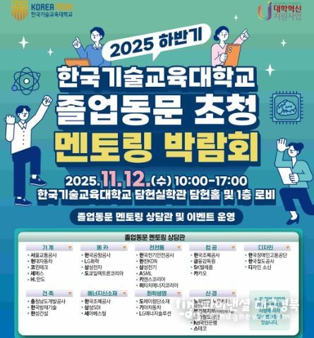 파이낸셜대구경북 기자 | 한국기술교육대학교(KOREATECH·총장 유길상)는 12일 교내 담헌실학관 일대에서 ‘2025 하반기 졸업동문 초청 멘토링 박람회’를 개최했다.
