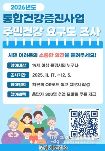 참여 방법은 문경시 홈페이지에 게시된 QR코드를 통해 온라인으로 참여할 수 있으며, 응답자 중 300명을 추첨해 모바일 상품권을 지급할 예정이다.
