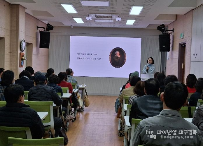 파이낸셜대구경북 김유신 기자 | 대구 남구는 지난 5일 평생학습관에서 이소영 작가 초청 강연을 시작으로 ‘미술과 고전이 들려주는 인문학 이야기’ 라는 주제로 인문주간을 진행했다.
