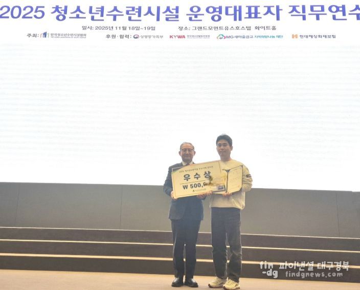 파이낸셜대구경북 김유신 기자 | 대구 수성구청소년수련원은 한국청소년수련시설협회에서 주최·주관한 ‘2025 청소년수련시설 우수사례 공모전’에서 우수한 성과를 거두며, 지난 18일 한국청소년활동진흥원 이사장상을 수상했다.