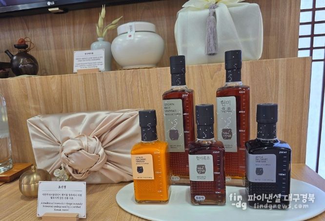 초산정의 대표 상품들은 APEC 경제 전시장 내 경북 K-Food 홍보관에 전시되어 큰 관심을 모았고, 한상준 대표는 전통 한복 차림으로 참석하여 현미식초를 포함한 전통발효식초 제조 과정을 직접 시연했다.