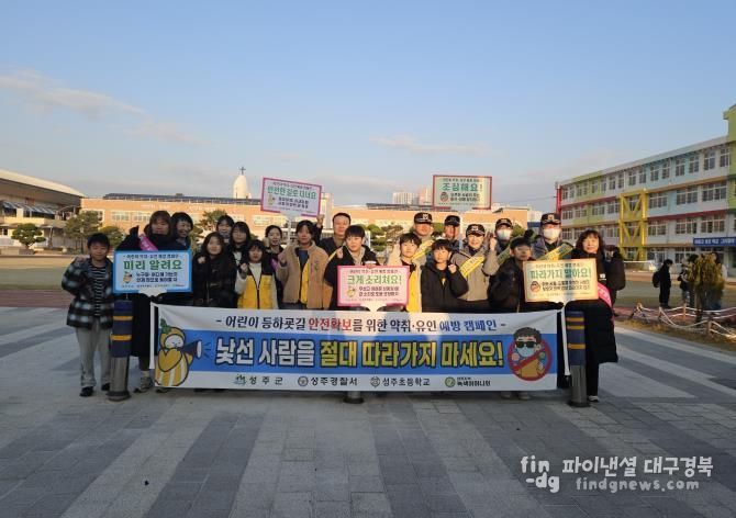 파이낸셜대구경북 기자 | 성주군은 11월 20일 성주 초등학교에서 재학생 및 학부모를 대상으로 등하굣길 안전 확보를 위한 ‘어린이 약취·유인 예방 캠페인'을 실시했다.