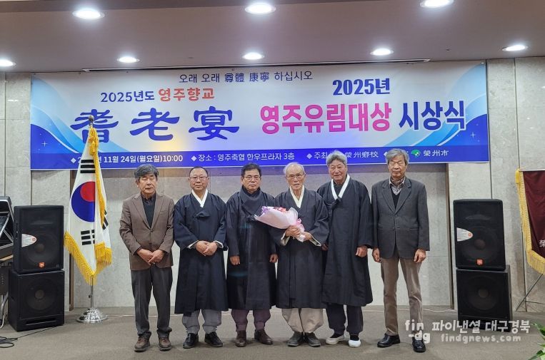 파이낸셜대구경북 기자 | 영주시는 지난 24일 영주축협한우프라자 3층 대강당에서 열린 ‘2025년 영주향교 기로연’와 함께 ‘2025년 제1회 영주 유림대상’ 시상식을 개최했다.