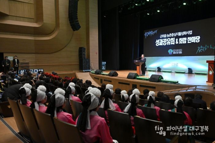 파이낸셜대구경북 기자 | 대구 군위군은 지난 25일 삼국유사 교육문화회관에서 주민위원회 위원, 지역 주민, 관련 공무원 등 400여명이 모인 가운데 ‘군위읍 농촌중심지 활성화사업 성과공유회’를 열고 지난 5년간의 성과를 결산했다.