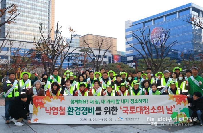 또한 수성구는 23개 동에서도 자체적으로 ‘국토대청소의 날’ 행사를 진행하여 청소 취약지역을 중심으로 낙엽 수거와 환경정화 활동을 펼칠 예정이다.