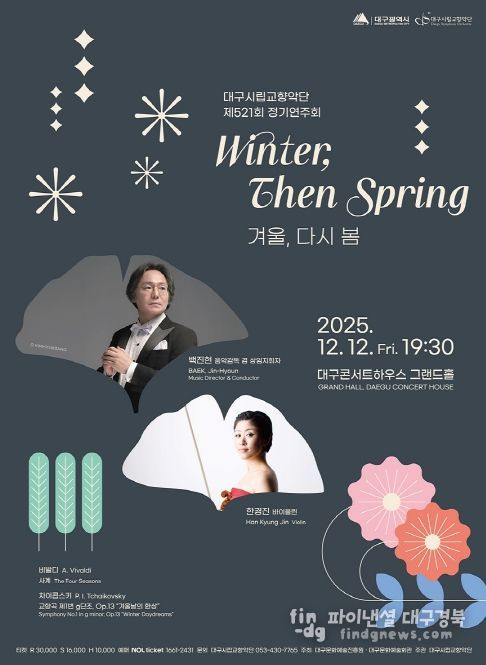 파이낸셜대구경북 김유신 기자 | 대구시립교향악단은 12월 12일 오후 7시 30분, 대구콘서트하우스 그랜드홀에서 올해 마지막 정기 공연인 ‘제521회 정기연주회: 겨울, 다시 봄’을 개최한다.