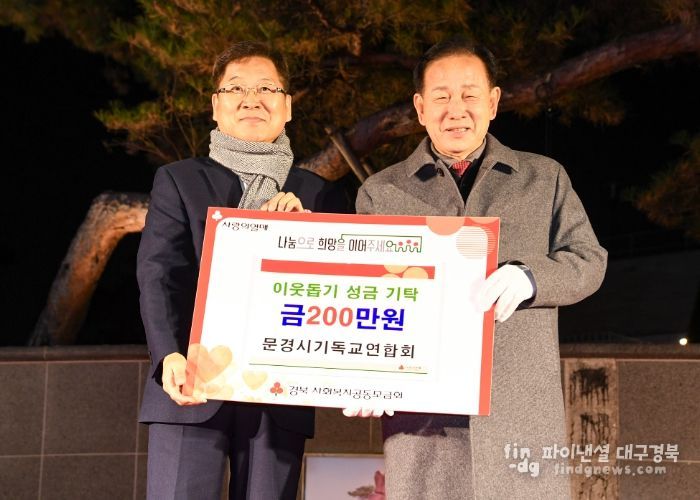 신현국 문경시장은 “지역의 어려운 이웃을 위해 따뜻한 손길을 전해준 문경시기독교연합회에 깊이 감사드린다”며 “기탁받은 성금은 도움이 필요한 시민들에게 소중히 전달하겠다”고 말했다.